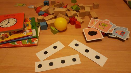 I PUNTINI, però, possono essere facilmente usati anche in giochi più liberi, come le costruzioni o la palla. Sta a noi essere bravi ad interagire con il bambino in modo adeguato ed approfittare del nostro turno nella conversazione per esporlo a combinazioni di due parole.